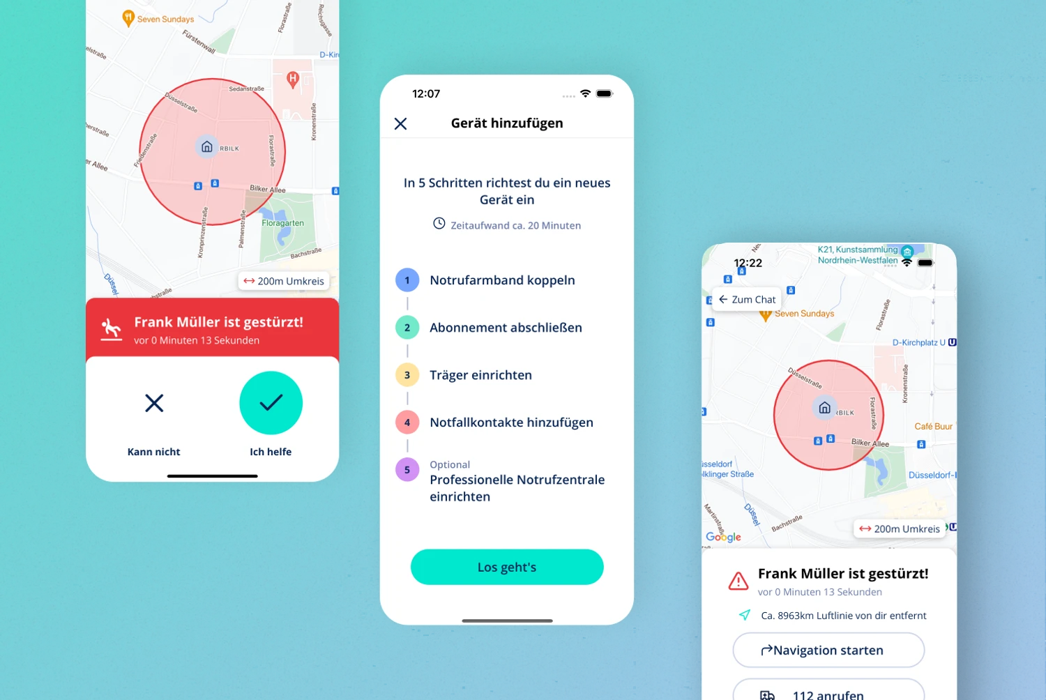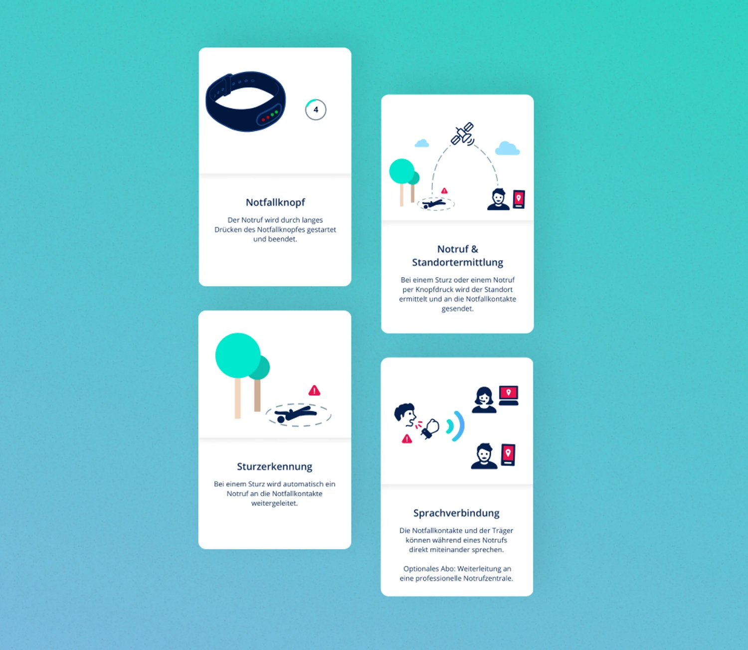 Notfälle sind Ausnahmezustände. Menschen handeln unter Angst und Zeitdruck. Das Zusammenspiel aus Armband, Notruffunktion und App musste absolut verlässlich sein.
